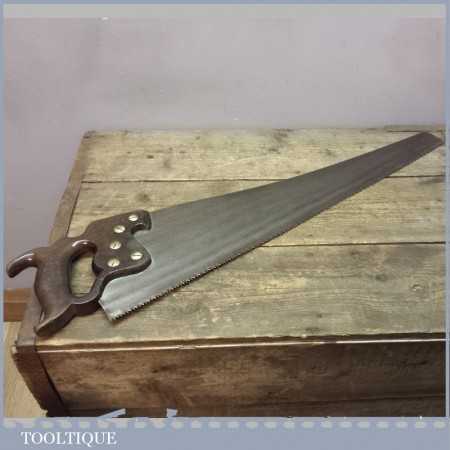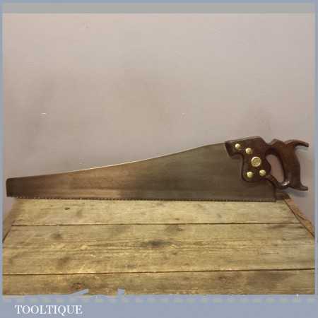 Vintage Philadelphia Disston cross cut saw with 7 teeth per inch (tpi) and measures approx 26” long. This saw is straight and pretty sharp although I always say and experienced woodworker could always make it better.