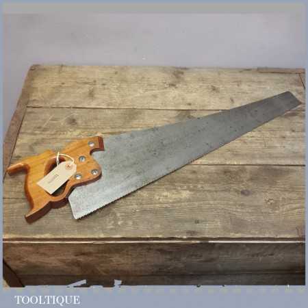 Vintage Disston USA 22” D8 cross cut panel saw in good used condition, sharp and straight it’s a nice saw by a renowned saw maker know for making the best saws ever produced. I always say that all saws can be improved by seasoned woodworkers who can sharpen their own saws this is because each has their own ability and preferences.
