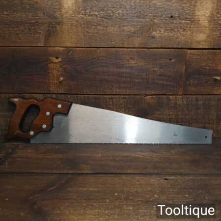 Vintage Disston USA 24” cross cut panel handsaw with 6 tpi, fully refurbished and sharpened ready for use. These may not have the same reputation as the early Philly saws but they certainly compete in quality with the best of the rest.