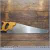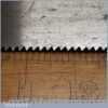 The saw has been thoroughly cleaned, jointed, resharpened and set by hand so that all the hard work of getting an old vintage saw right has been undertaken. We do this so that the next sharpening is easier and no more than a quick freshen up would be required. Those who are familiar with sharpening will know this is no small job and requires skill, effort and time to achieve good results.