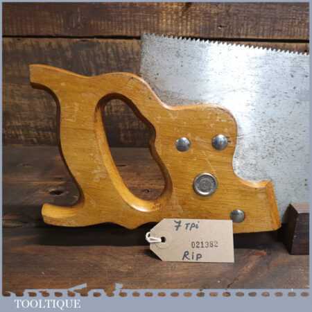 Vintage Disston USA 24” rip saw with 7 tpi, fully refurbished and sharpened ready for use. These may not have the same reputation as the early Philly saws but they certainly compete in quality with the best of the rest.