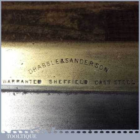 Vintage Drabble & Sanderson 14” brass back tenon saw with 11 tpi, fully refurbished and sharpened cross cut ready for use. Drabble & Sanderson were reckoned by old timers to be the English equivalent of the famous Henry Disston saws. After sharpening a few, I’d say they were right.