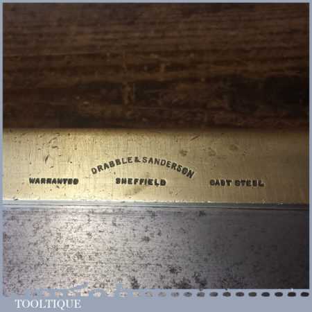 Lovely Vintage Drabble & Sanderson 14” brass back tenon saw with 11 tpi, fully refurbished and sharpened cross cut ready for use. Drabble & Sanderson were reckoned by old timers to be the English equivalent of the famous Henry Disston saws. After sharpening a few, I’d say they were right.