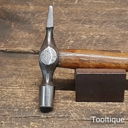 Vintage Draper Spain 4oz Cross Pien Pin Hammer with a Hardwood Handle, refurbished ready for use and in good used condition. Note: Faces redressed and handle is tight fitting.