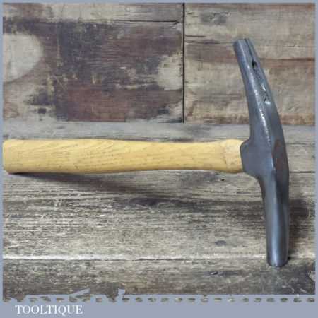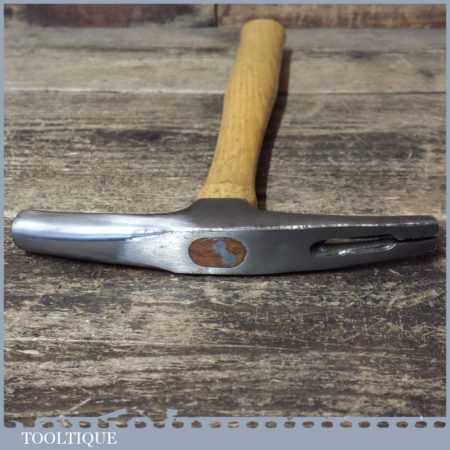 Vintage Draper upholsterer’s magnetic tack hammer with hickory handle in good used condition.