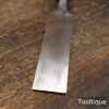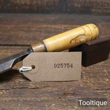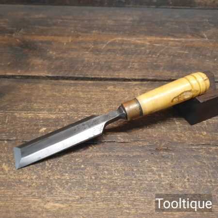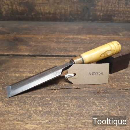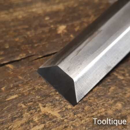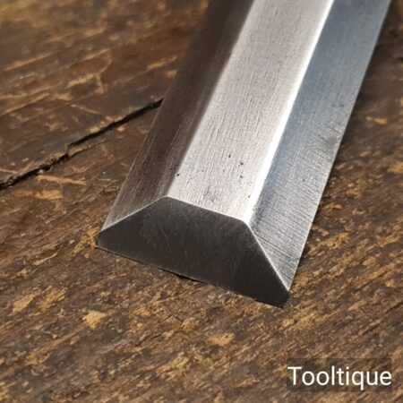 The chisel has been checked to ensure the tang is seated properly and the handle is solid and fit for use. All refurbished chisels are water cooled during the sharpening & flattening process to ensure the tempering is not affected