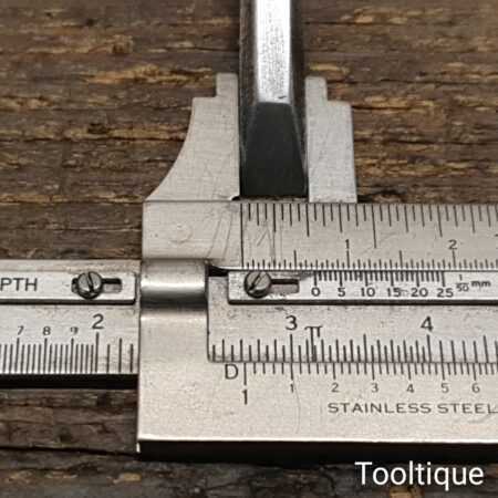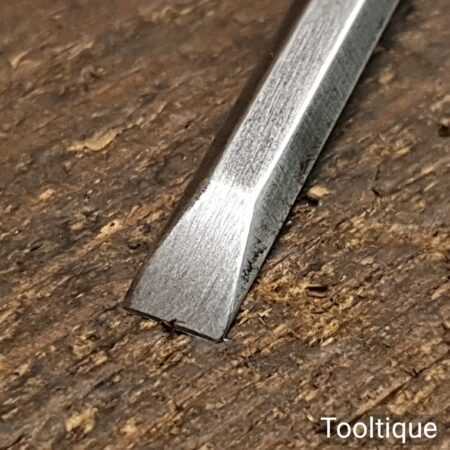 The chisel has been checked to ensure the tang is seated properly and the handle is solid and fit for use. All refurbished chisels are water cooled during the sharpening process to ensure the tempering is not affected.