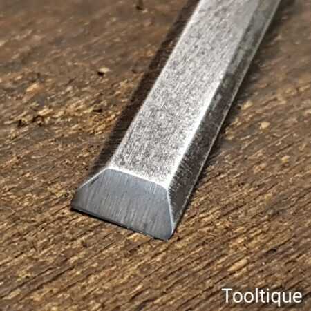 The chisel has been checked to ensure the tang is seated properly and the handle is solid and fit for use. All refurbished chisels are water cooled during the sharpening process to ensure the tempering is not affected.