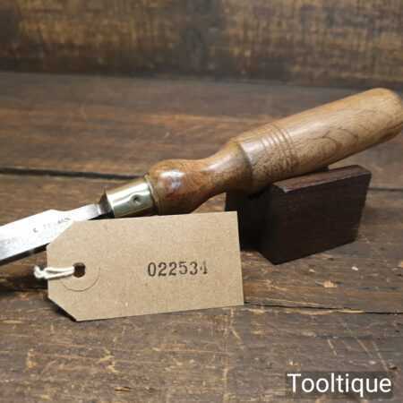 The chisel has been checked to ensure the tang is seated properly and the handle is solid and fit for use. All refurbished chisels are water cooled during the sharpening process to ensure the tempering is not affected.