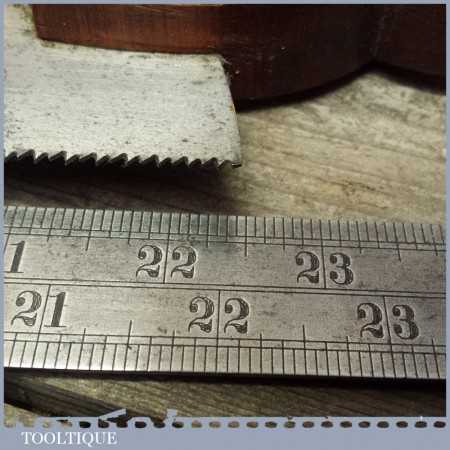 The saw has approx 10 teeth per inch and measures approx 22.