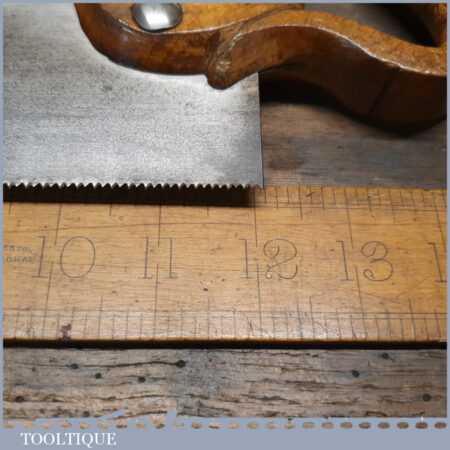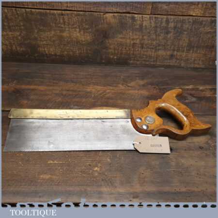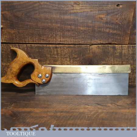 Vintage E. Garlick and Son 12” brass back tenon saw with 12 tpi, fully refurbished and sharpened cross cut ready for use. Note: The Brass saw back has had some abuse with a hammer but this saw has now been straightened properly and this is now just a cosmetic issue, hence price