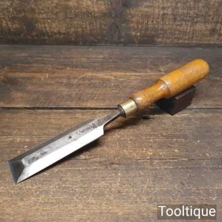 The chisel has been checked to ensure the tang is seated properly and the handle is solid and fit for use. All refurbished chisels are water cooled during the sharpening process to ensure the tempering is not affected.