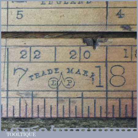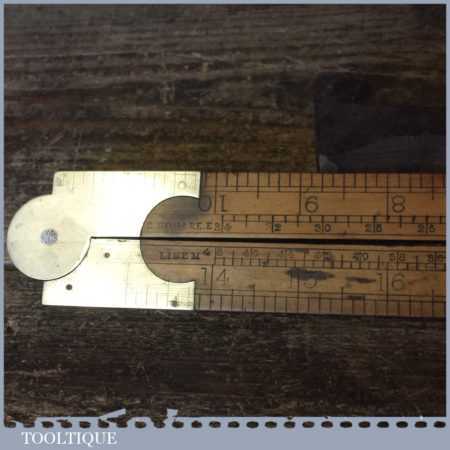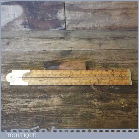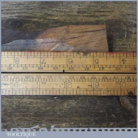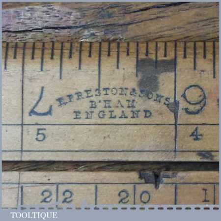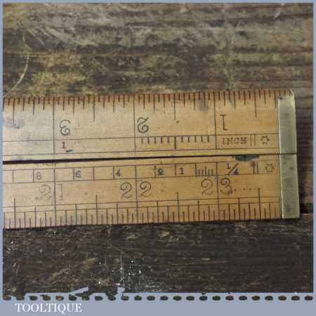 Vintage E. Preston & Sons 24” boxwood and brass folding ruler in used condition. Note: Locking pins missing and slight warping, see images.