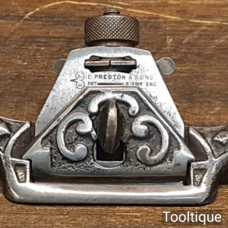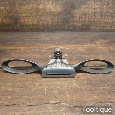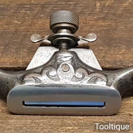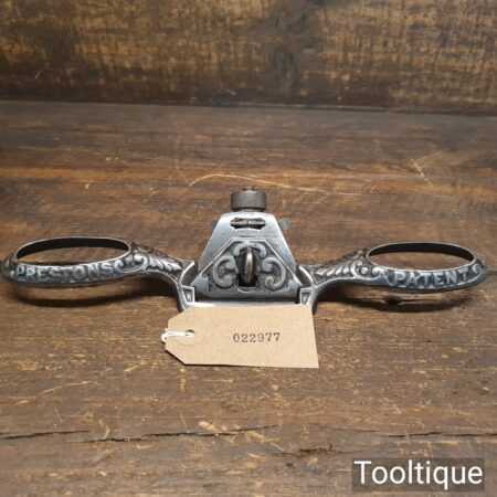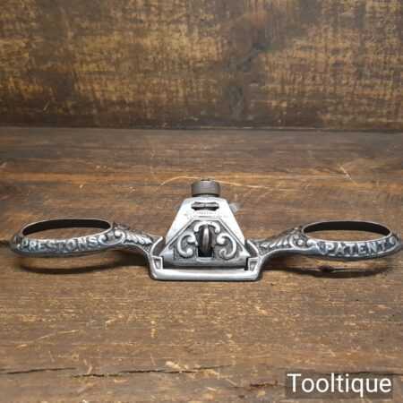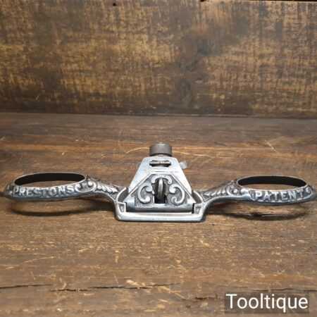 Vintage E. Preston & Sons decorative curved sole adjustable spokeshave with original iron, refurbished ready for use and in good used condition.