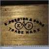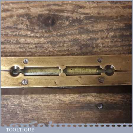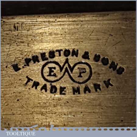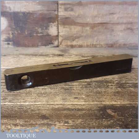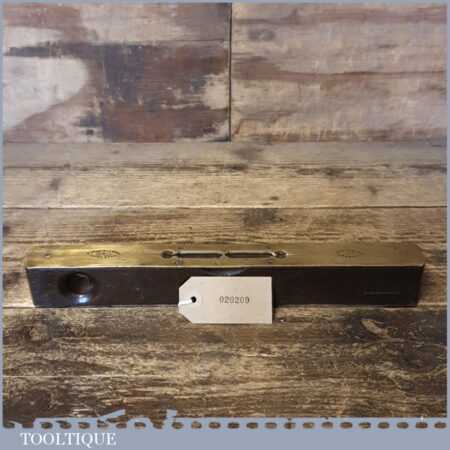 Vintage E. Preston & Sons 12” mahogany and brass spirit level with original clear bubble tubes in good used condition. Note: the level hasn’t been tested and may require resetting in putty if intended for use