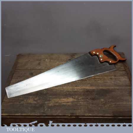 Vintage E T Roberts & Lee 23 ½” cross cut handsaw in good used condition. It has 7 tpi, it is straight with a crown curve to the tooth line to minimise contact for supposedly easier cutting and has been sharpened and set ready for use.