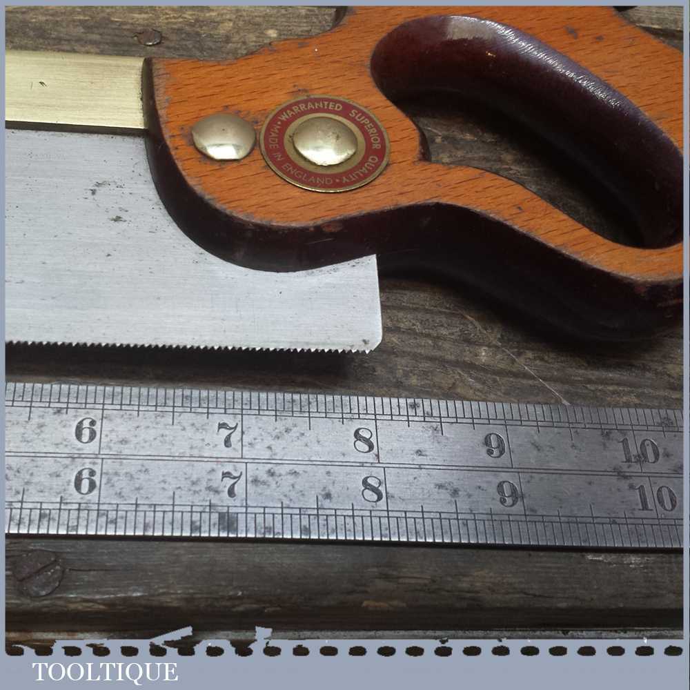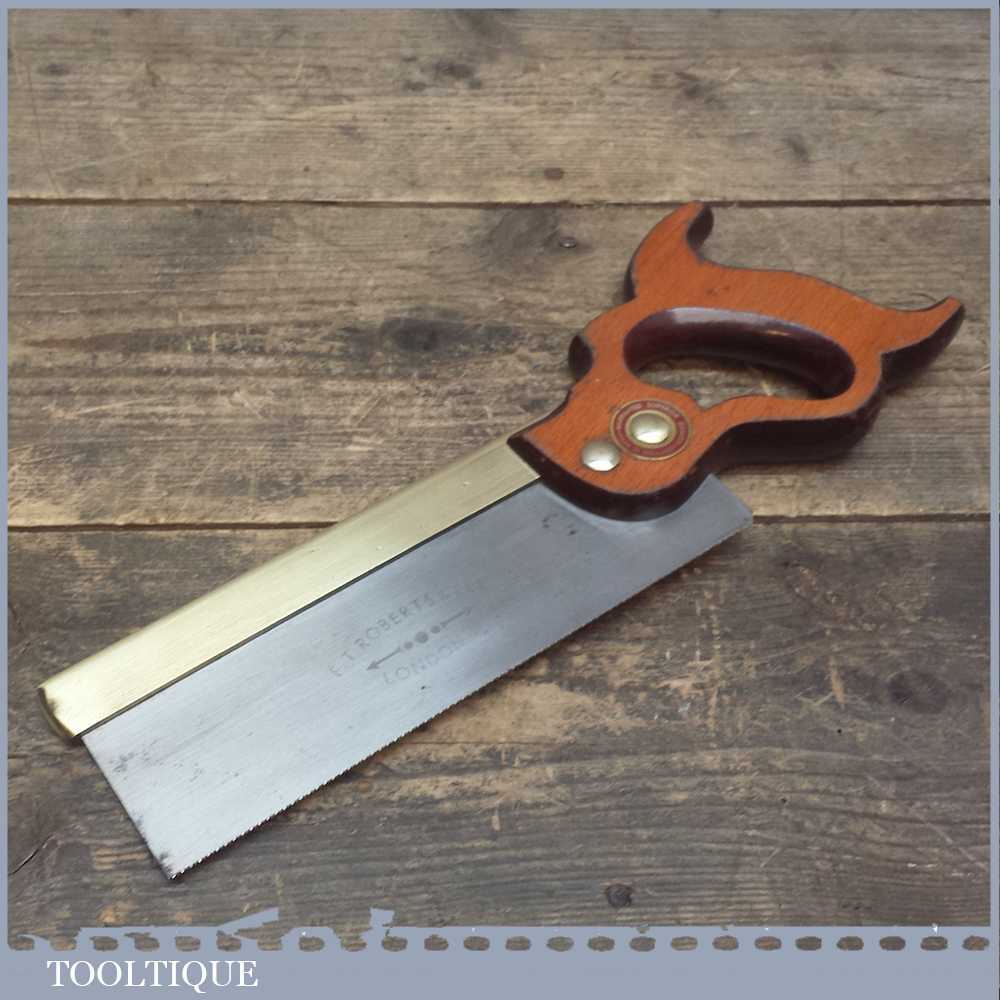 Vintage E.T Roberts & Lee 8” fine dovetail saw which is sharp and straight and as you can see has seen little work in its time.