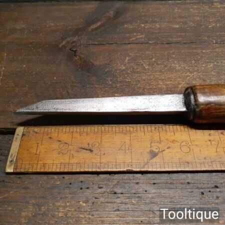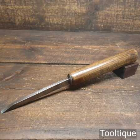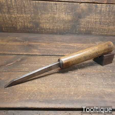 Vintage carpenter’s 1/4” cast steel mortice chisel with ash handle in good used condition, fully refurbished sharpened and honed ready for use. Note: Early 19th century chisel.