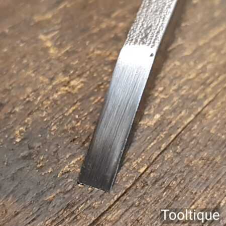 The chisel has been checked to ensure the tang is seated properly and the handle is solid and fit for use. All refurbished chisels are water cooled during the sharpening process to ensure the tempering is not affected.
