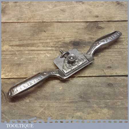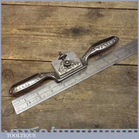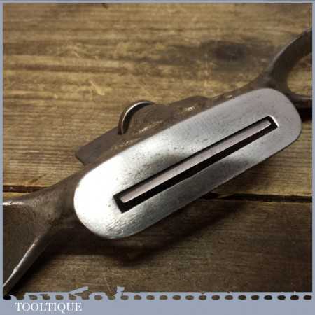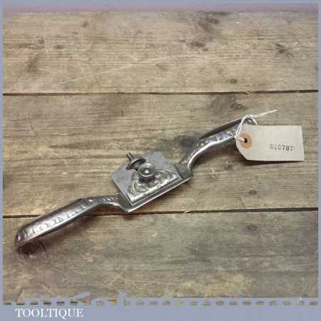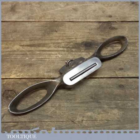 Early nickel plated Edward Preston Spokeshave with flat sole which is in good condition and has its original iron. It’s a strange design and was later improved as the blade has a tendency to move as the adjuster and cap are integrated and there isn’t a ledge in which it can site in the main body, it’s certainly a collectable tool rather than a users item. It’s certainly right as I have had these like this before.