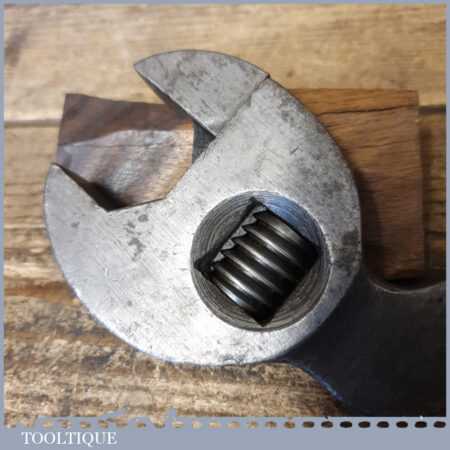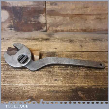 Vintage Easterbrook, Allcard & Co. 12” S-shaped adjustable spanner wrench in good used condition.