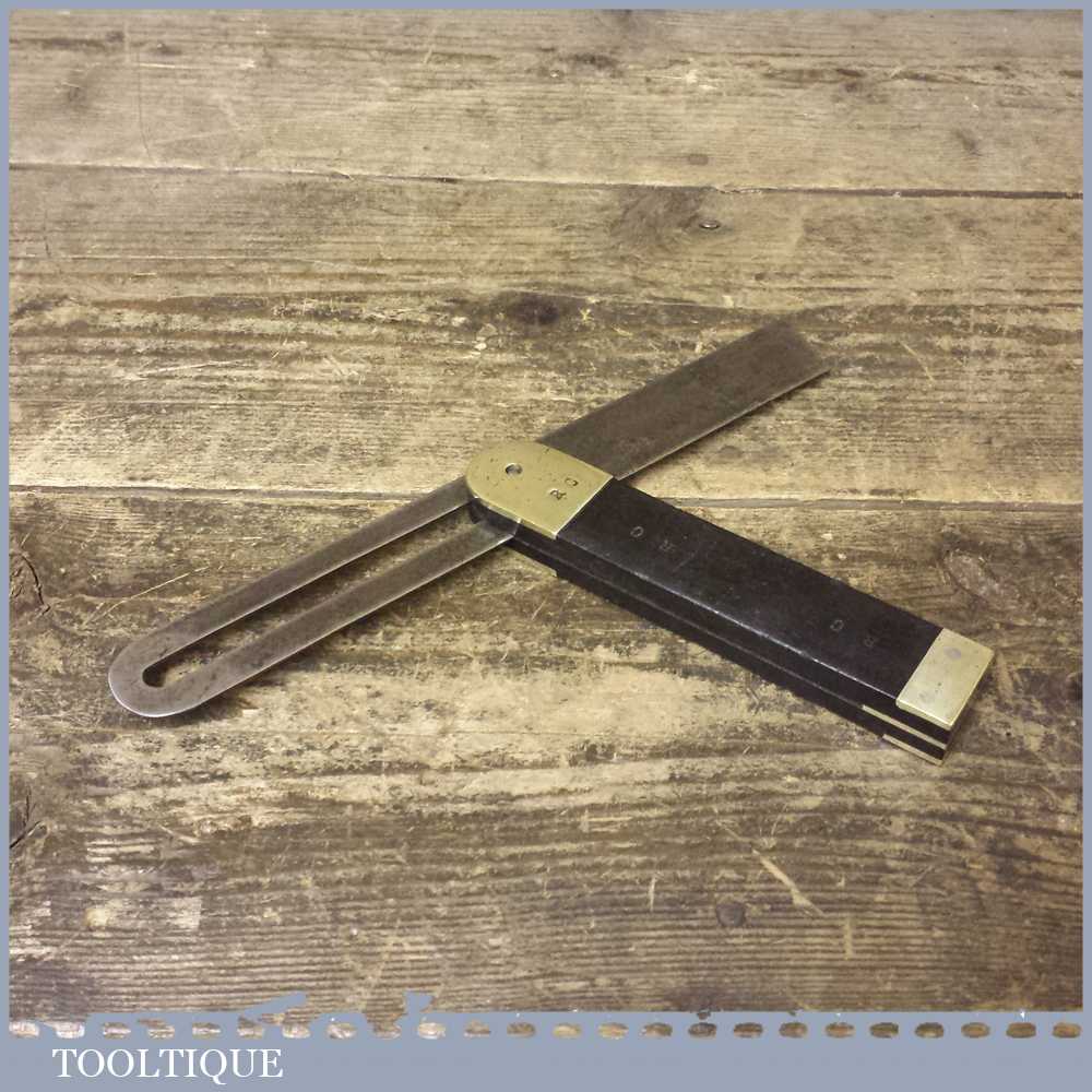 Vintage Ebony and brass 9” adjustable bevel in good used condition, some pitting but in good usable shape.