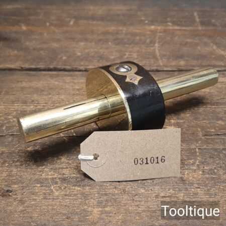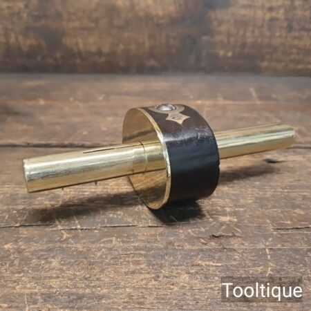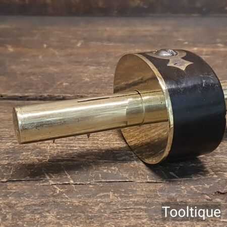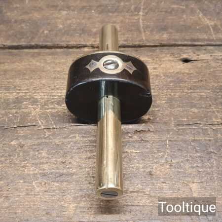 Vintage Ebony and Brass screw adjustment round brass stemmed mortice gauge, refurbished ready for use and in good used condition. Note: This has its inner anti twist clamp plate.