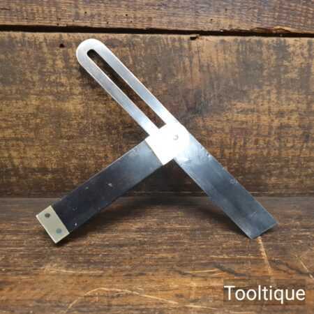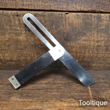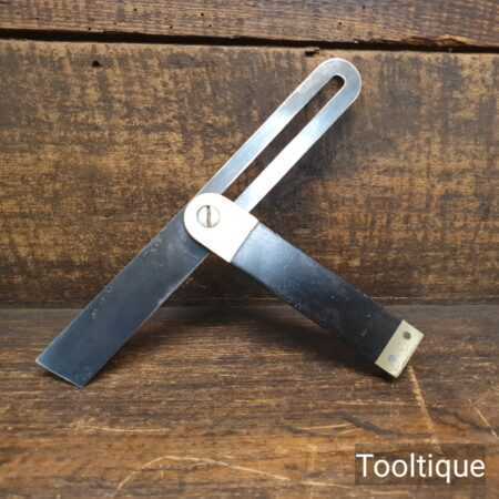 Vintage ebony and brass sliding bevel with 9” blade, in good used condition and ready for use.