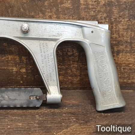 Vintage Eclipse No: 40 alloy handled hack saw with double sided blade in good used condition. These are far more solid than the modern tube types we see today.