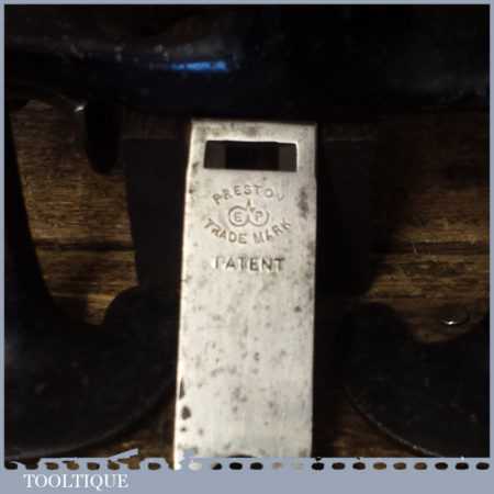 Vintage Edward Preston No: 1388 patent adjustable quirk router with two cutters and three guides, convex and flat in good used condition.