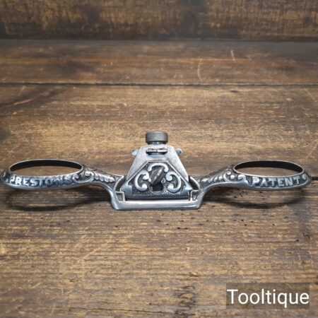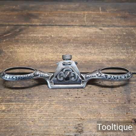 Vintage Edward Preston ornate flat soled spokeshave with a polished finish, sharpened ready for use and in good used condition.