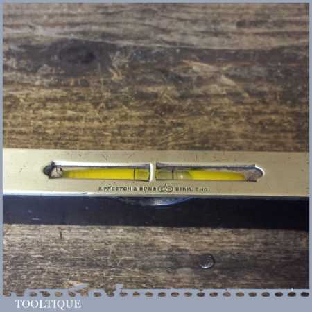 Vintage Edward Preston & Sons ebony and brass 10” spirit level in good used condition.