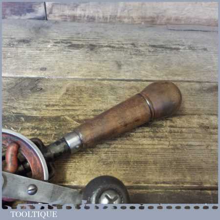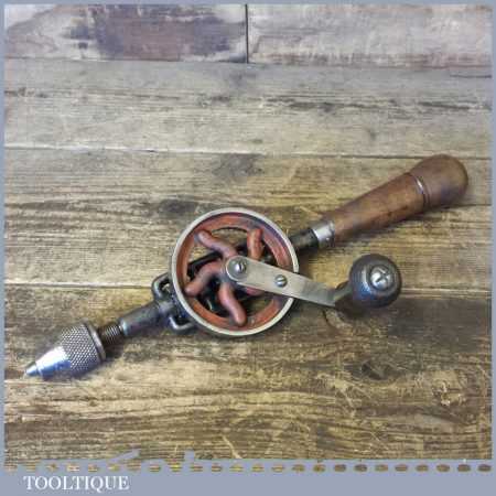Vintage egg beater hand drill the drill has had a light clean and moves freely and ready for use. Note: The winding handle has been replaced but seems to ok when used.