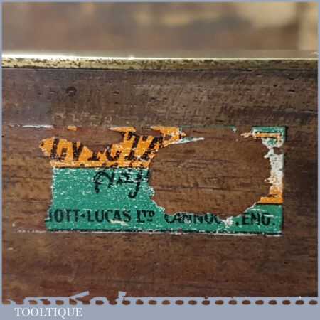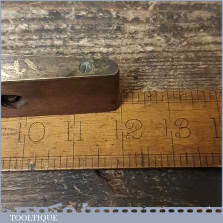 Vintage Elliot-Lucas No: 526 mahogany and brass 12” adjustable boat level in good used condition. Note: The level has not been tested and may require resetting in putty if intended for use