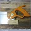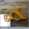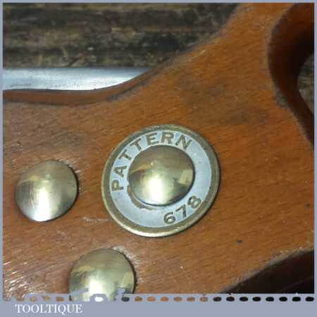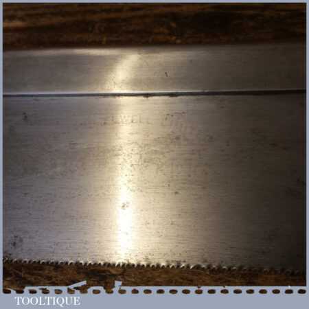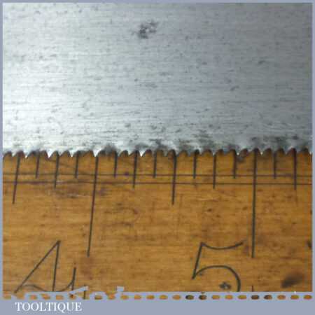 The saw has been thoroughly cleaned including under the handle, jointed, resharpened and set by hand so that all the hard work of getting an old vintage saw right has been undertaken. We do this so that the next sharpening is easier and no more than a quick freshen up would be required. Those who are familiar with sharpening will know this is no small job and requires skill, effort and time to achieve good results.