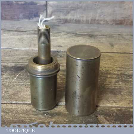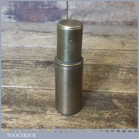 Vintage engineered brass sealed capsule with internal wick presumably to ensure the contents stay dry in good used condition. This would be suitable for use in survival conditions when the elements require robust gear.