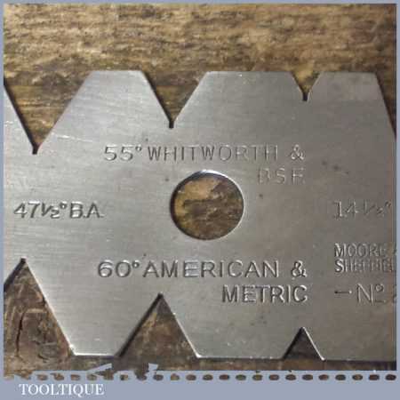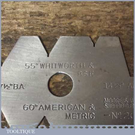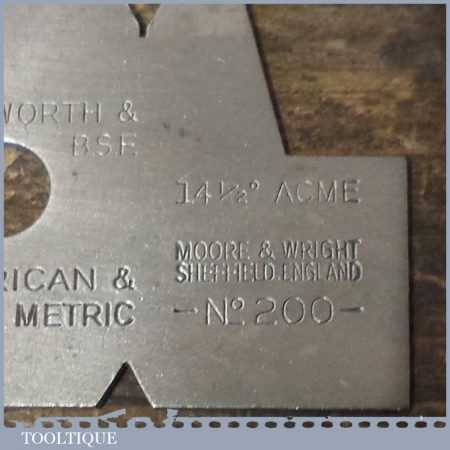 Vintage Engineering No: 200 “Screw Cutting Gauge” by Moore & Wright in good used condition.