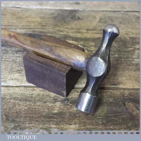 Vintage engineers ball pein hammer with wooden handle in good used condition.