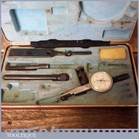 Vintage engineers imperial clock gauge precision dial test indicator with accessories in good used condition. Note some accessory parts missing.
