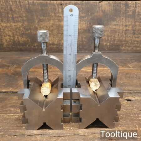 Vintage engineer’s interesting pair of unique V blocks with clamps, in good used condition