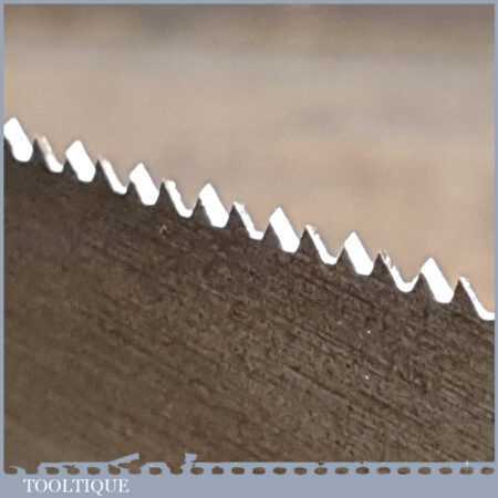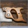 The saw has been thoroughly cleaned, jointed, resharpened and set by hand so that all the hard work of getting an old vintage saw right has been undertaken. We do this so that the next sharpening is easier and no more than a quick freshen up would be required. Those who are familiar with sharpening will know this is no small job and requires skill, effort and time to achieve good results.