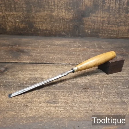 Vintage English 3/8 Bevel Edge Chisel with a Boxwood Handle, fully refurbished ready for use and in good used condition. Note: Probably By Marples and rehandled at some point, small handling crack in handle resin filled. All refurbished chisels are water cooled during the sharpening process to ensure the tempering is not affected.