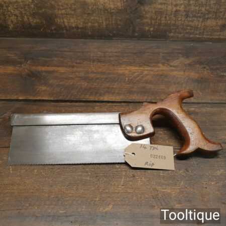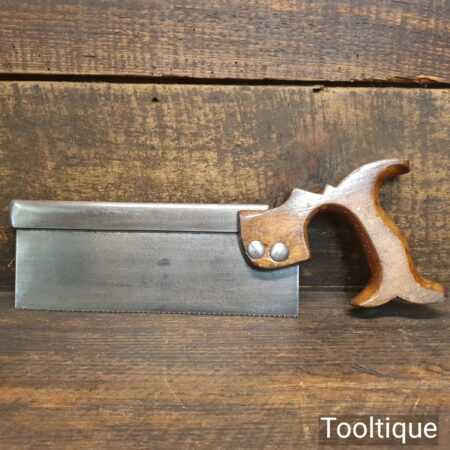 Vintage English 8” steel back dovetail saw with 14 tpi, fully refurbished and sharpened as a rip ready for use.