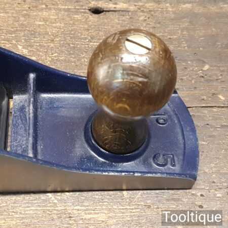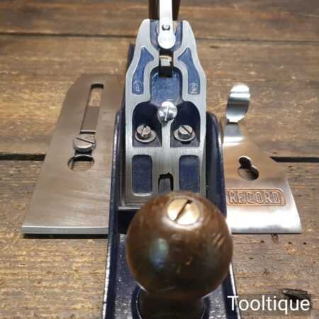 Vintage English No: 05 jack plane, with Record parts fully refurbished and in good used condition, ready to use. Note: Although this is isn’t a record base, I can vouch this will work just as well having undertaken the refurbishment. Iron Cuts to the same area of the throat which is very close to the original size.