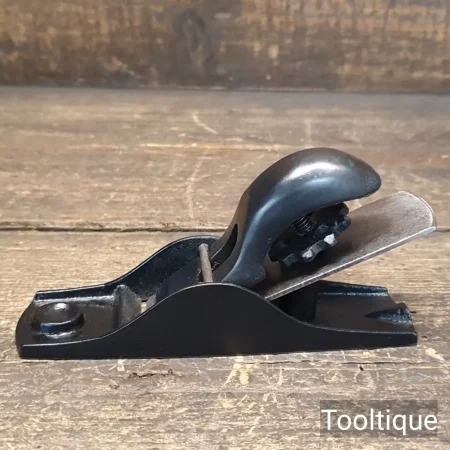 Vintage English No: 102 Block Plane, refurbished ready for use and in good used condition. When refurbishing planes, we do not merely clean them to make them look good, they are restored to a level that ensures this plane is actually ‘in plane to within 0.01mm’ sharpened, honed and all the components are thoroughly cleaned so that they move freely. Our planes are specifically reconditioned to satisfy professional tradesmen who will instantly know the difference between buying one of our planes over general other used ones.