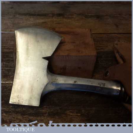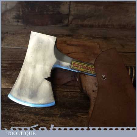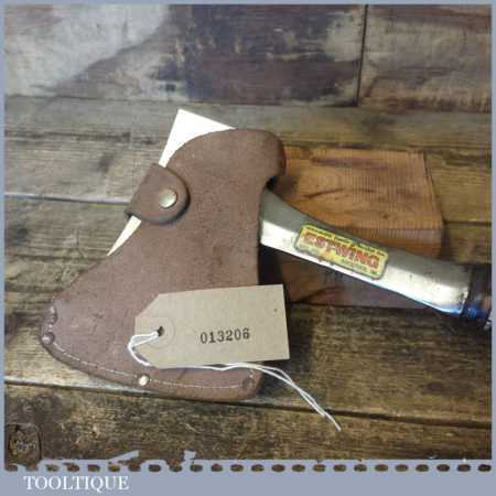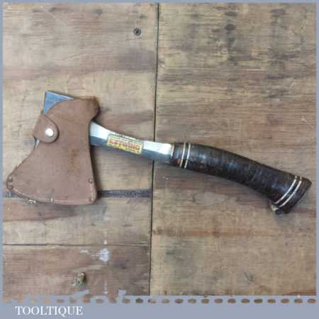 Vintage Estwing belt hand axe or hatchet with leather grip handle and with leather sheath, fully refurbished sharpened and honed ready for use.