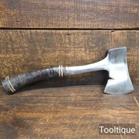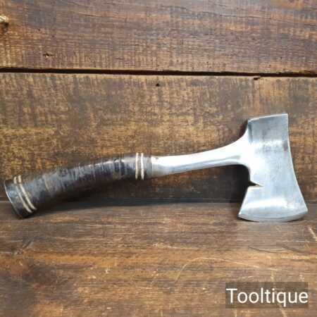 Vintage Estwing belt hand axe or hatchet with leather grip handle, it has a 3 ¼” wide cutting edge fully refurbished sharpened and honed ready for use. The leather handle has been resin treated and sealed.