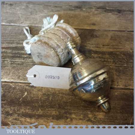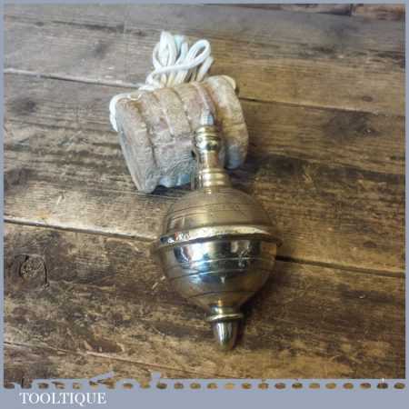 Vintage European Masons large 5” lead filled brass plumb bob in sound used condition. Note: split to side of the brass where the lead can be seen, see images.