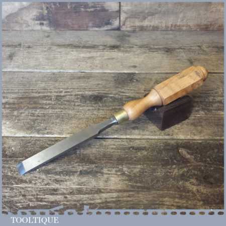 The chisel has been checked to ensure the tang is seated properly and the handle is solid and fit for use. All refurbished chisels are water cooled during the sharpening process to ensure the tempering is not affected. These old cast steel chisels are hand forged and far superior in quality because of the high carbon steel that was used which produces a keener edge, this was also generally used throughout the full length