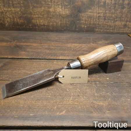 The chisel has been checked to ensure the tang is seated properly and the handle is solid and fit for use. All refurbished chisels are water cooled during the sharpening process to ensure the tempering is not affected.